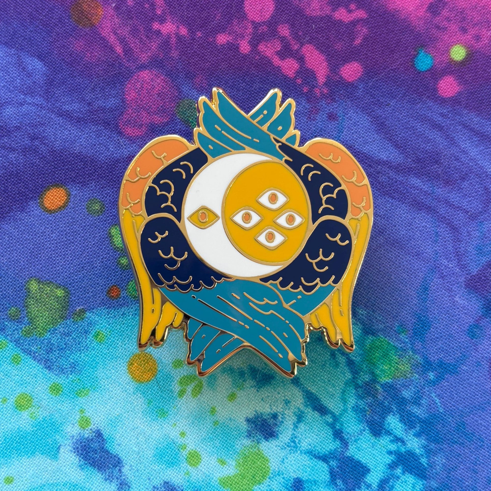 | This pin is 1.8 inches long with gold plating. It has hard enamel, two pin posts, and rubber backings. |