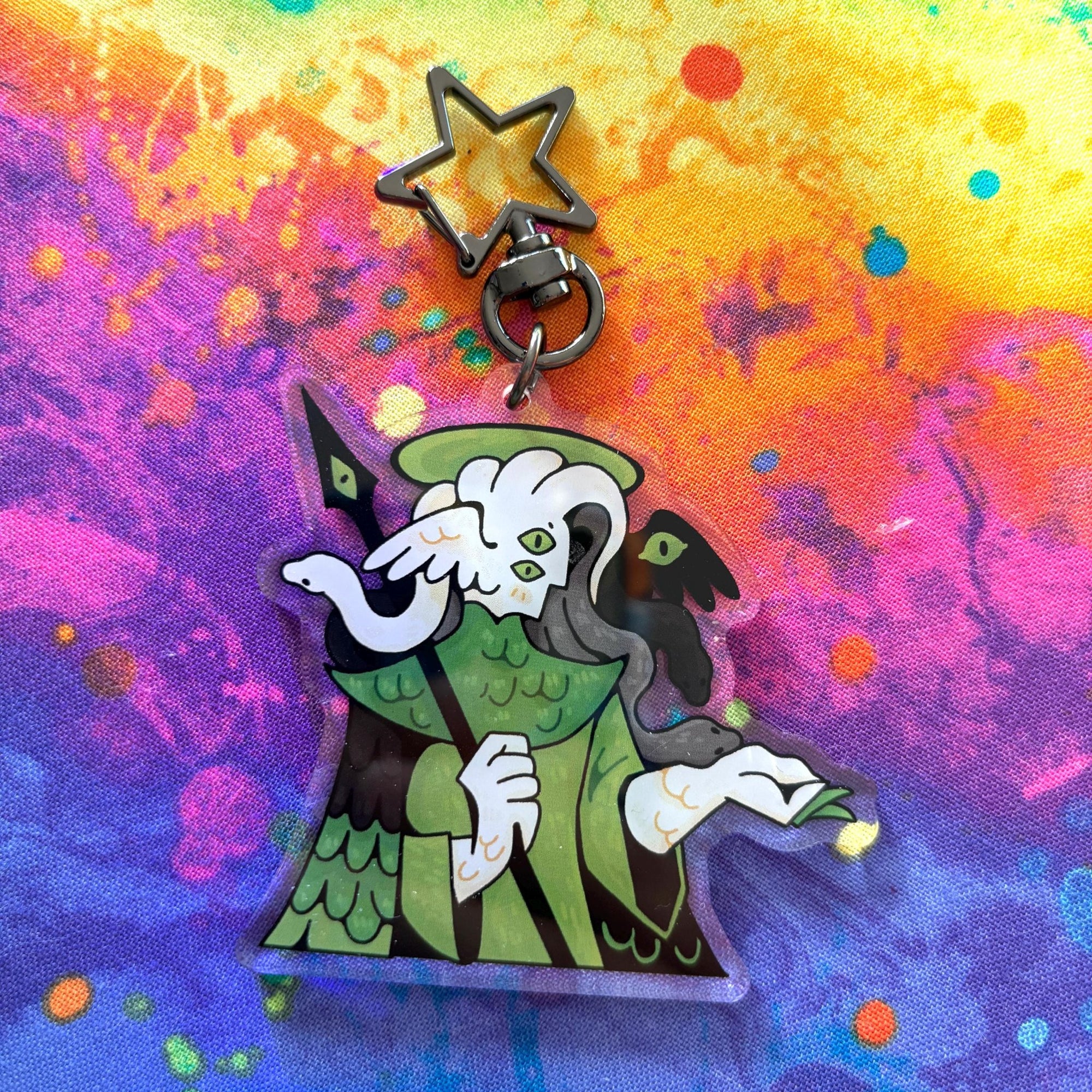 | This acrylic keychain is 2.5 inches (6.3 cm) on the longest side, double-sided with the same print on both sides; it has a gun metal star clasp. |