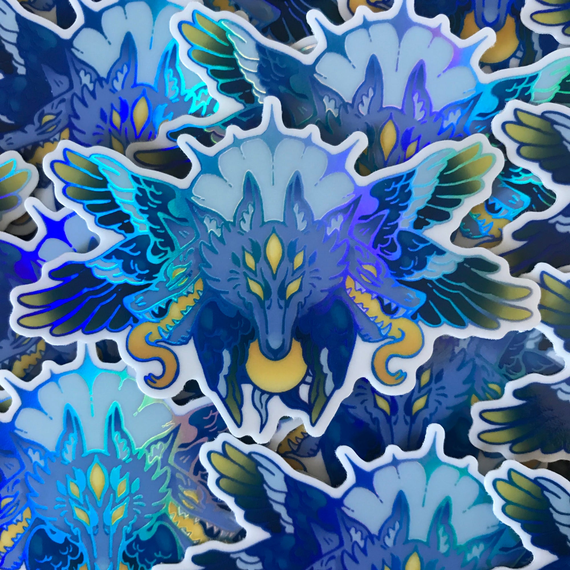 Cerberus Cherub loves going on walks and enacting holy vengeance. This sticker is approximately 3 inches (7.6 cm) on the longest side. It is printed on holographic glossy vinyl. This design was made in collaboration with @wyrmzier.