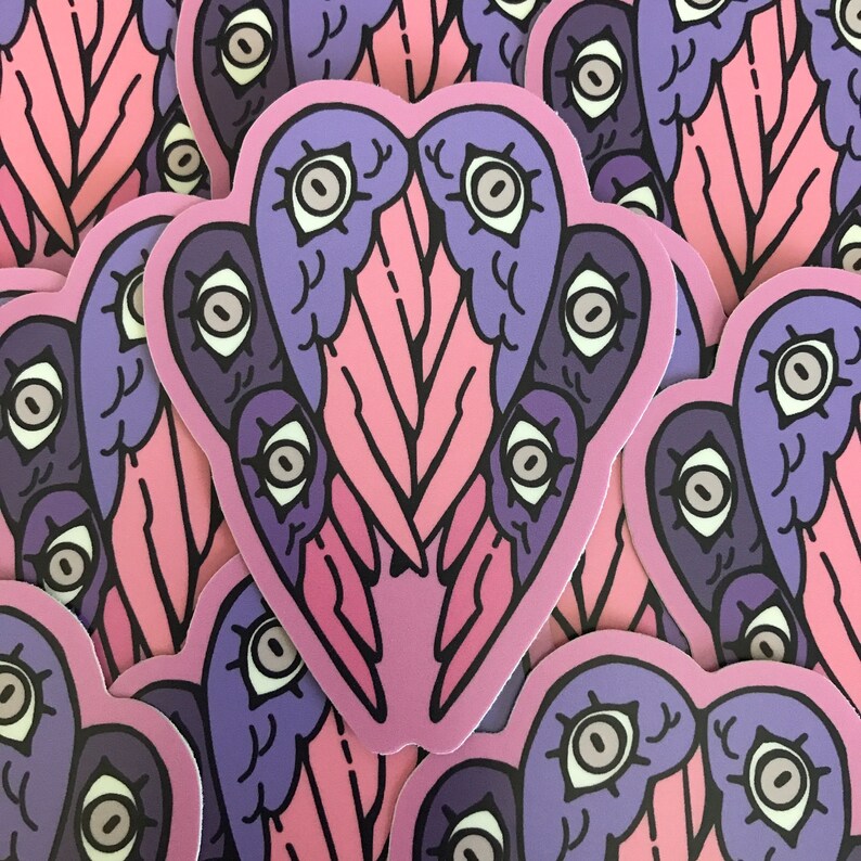 A many-winged, many-eyed angel for Cupiosexual pride.This sticker is approximately 3 inches (7.6 cm) on the longest side, and printed on matte vinyl.