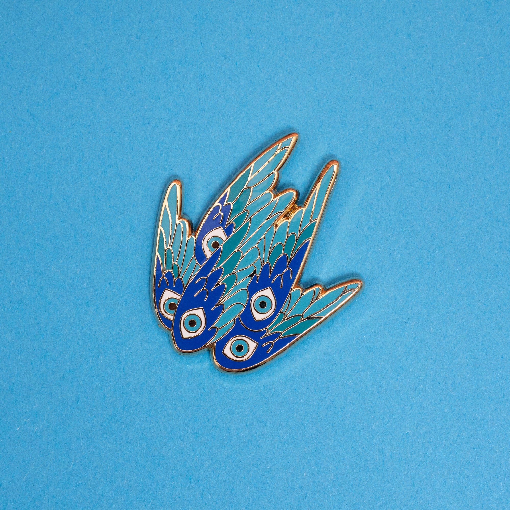 This pin is part of my angel-themed pin series, Angelology. The Flying Seraphim is available in: blue or red.