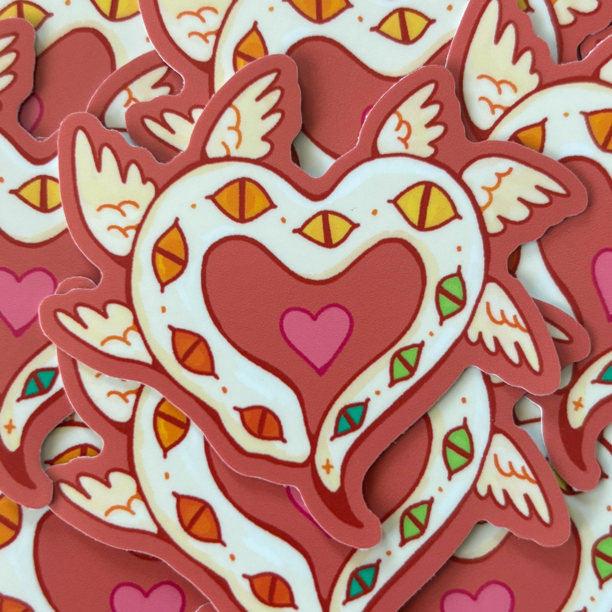 This sticker is approximately 2.5 inches on the longest side. It has a matte finish.
