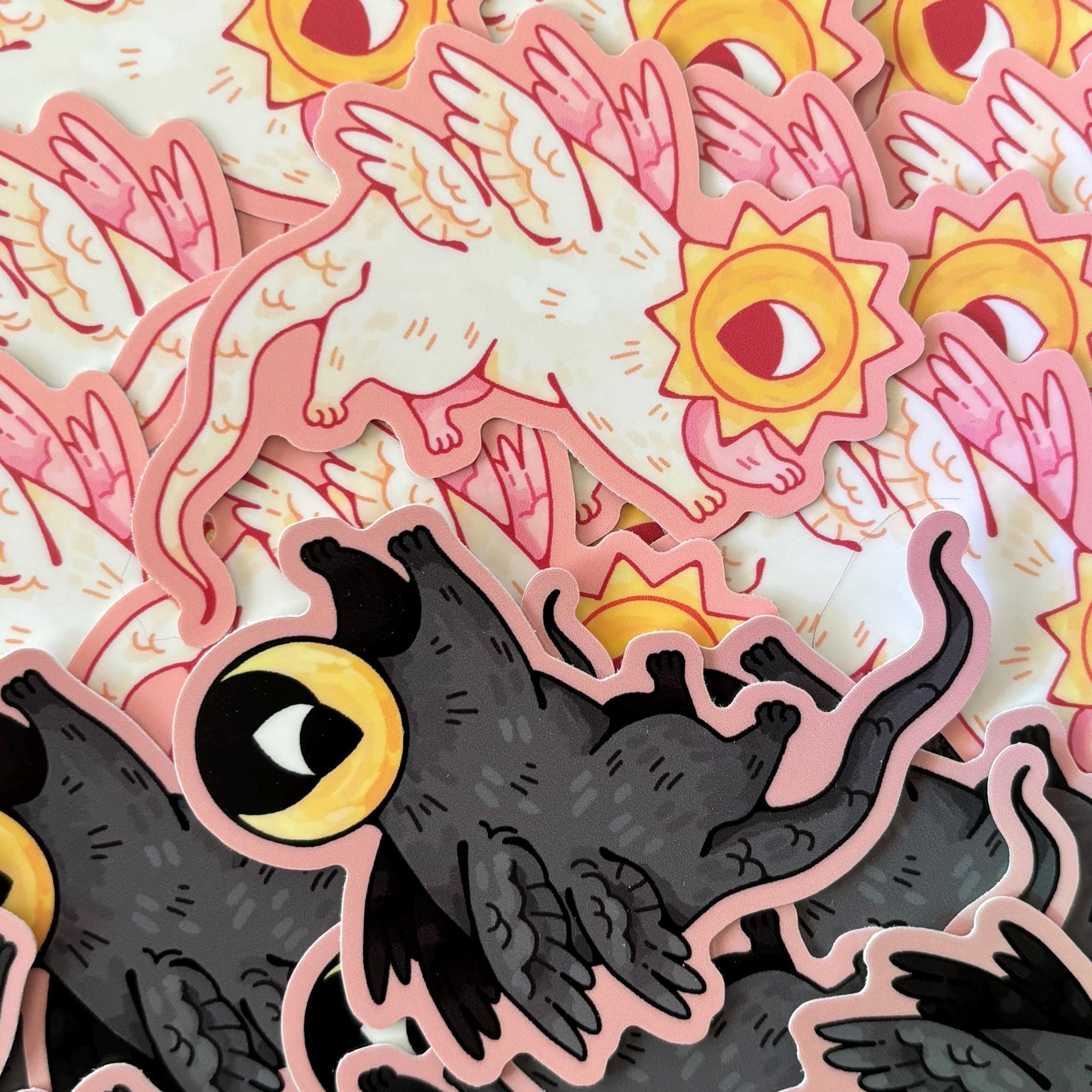 | Comes as a pair. Each sticker is 3 inches on the longest side, with a matte finish. |