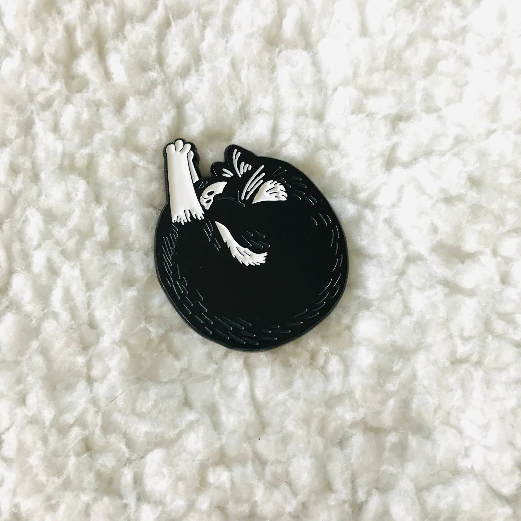 This pin is approximately 1.5 in (4 cm) and is available in soft enamel with black dyed metal.