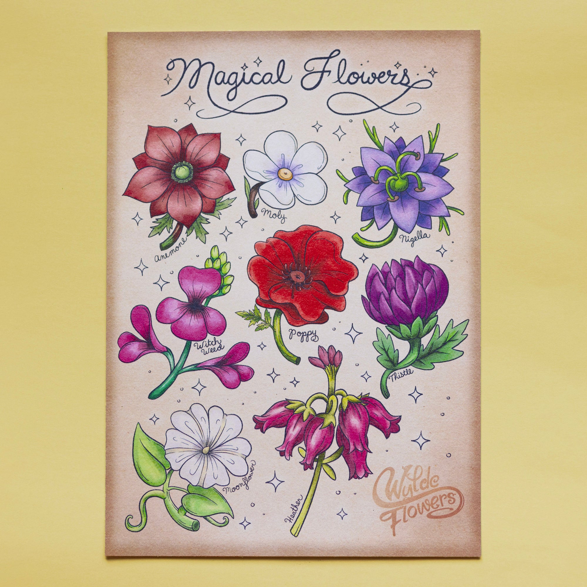 Let your knowledge bloom with this magical print! Finely detailed and perfectly "aged", this illustration highlights the most potent of plants from the Wylde Flowers universe. And before you ask: yes, Violet totally keeps a copy in her sanctum. 💐
