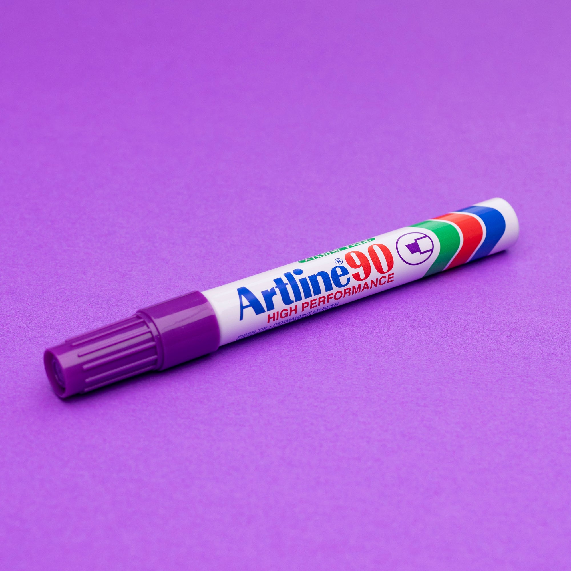 The classic Artline 90 Permanent Marker. Effective on a wide range of surfaces including steel, paper, wood, glass and a wide array of dry surfaces. Featuring a chisel shaped calligraphic 5mm tip.