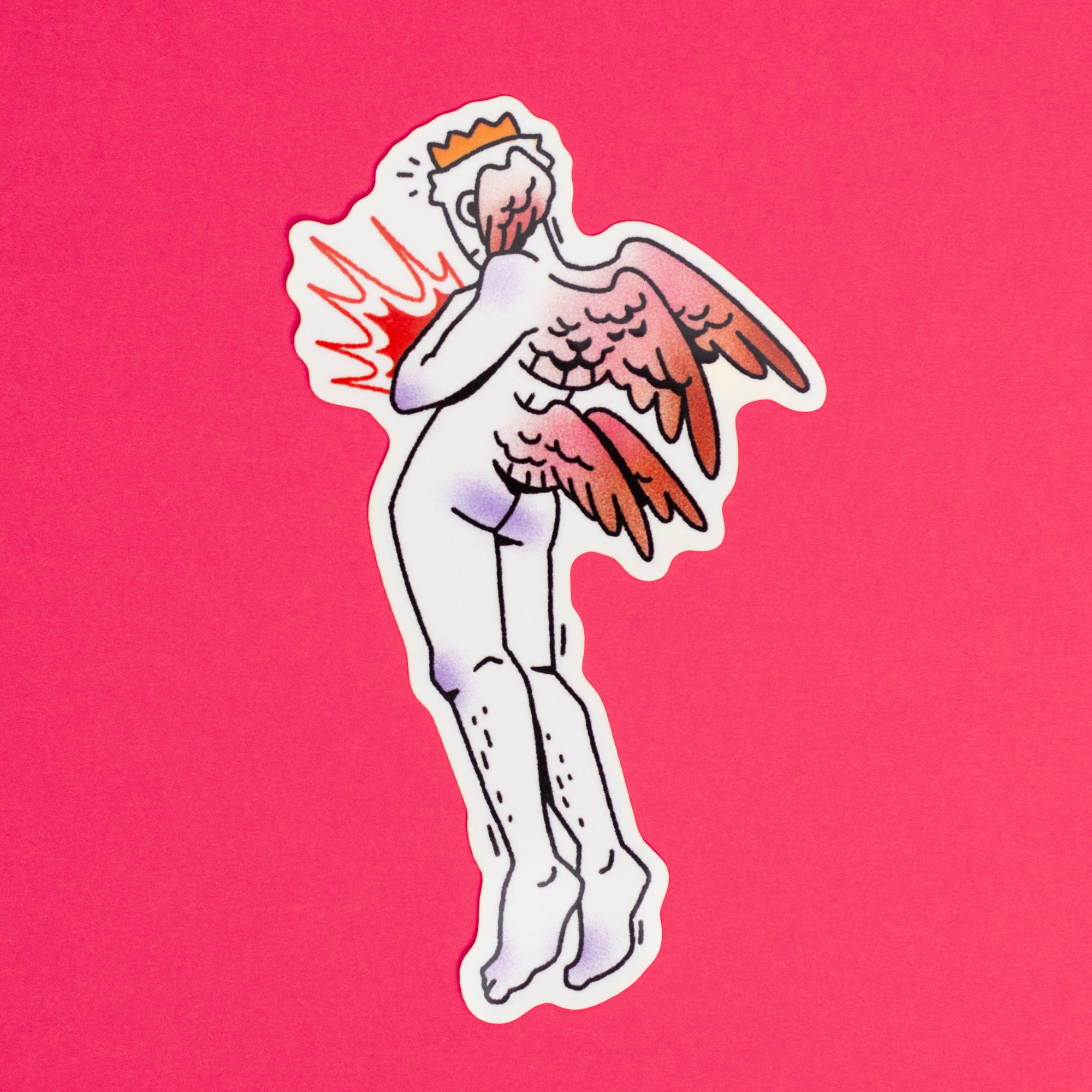 An original sticker featuring the tattoo flash art of Taurus Teej!