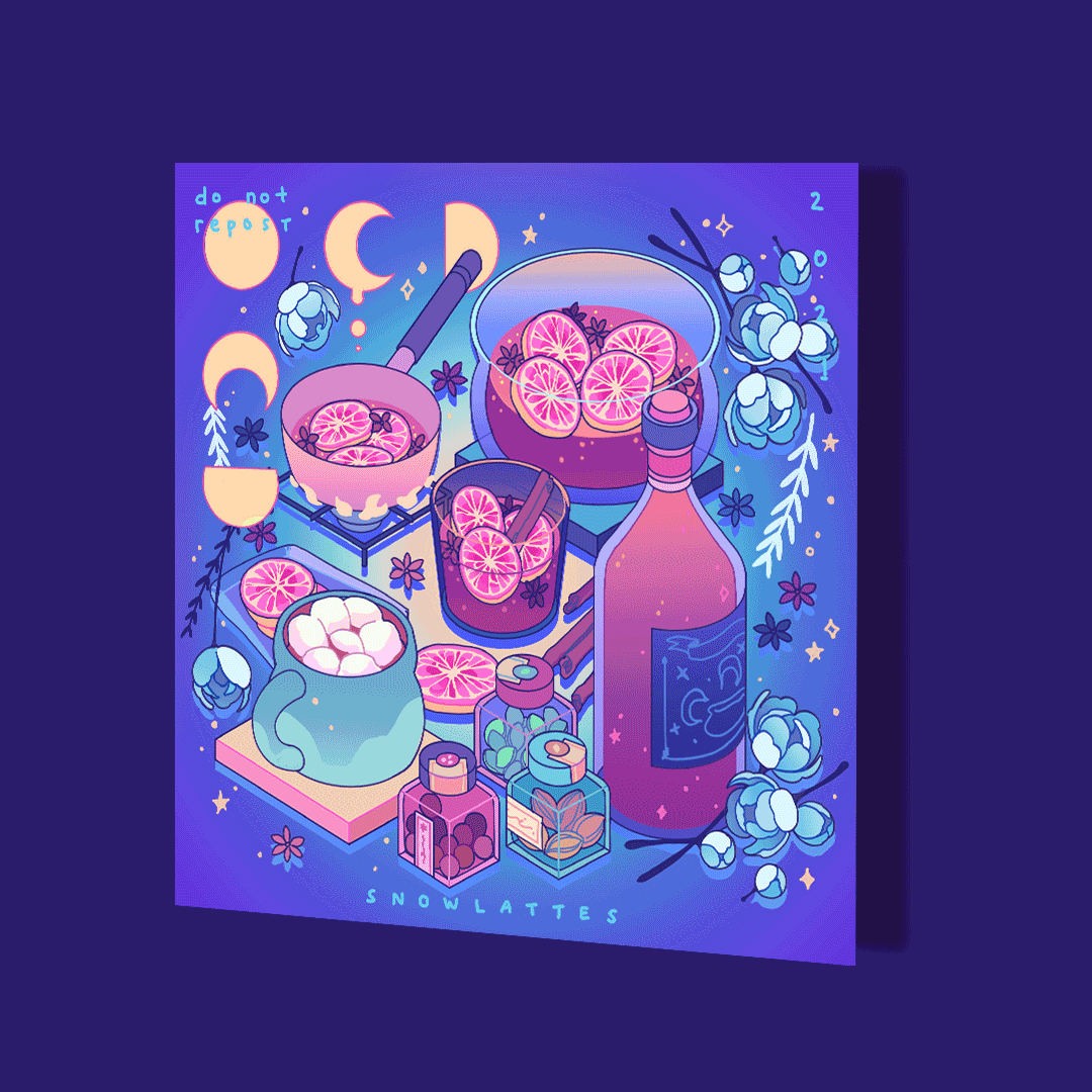Sipping warm drinks all Winter long! Sometimes all you need is a nice warm drink.Brewing Winter is a print from the Brewing Seasons series featuring seasonal snacks and beverages.Original Illustration by Snowlattes.