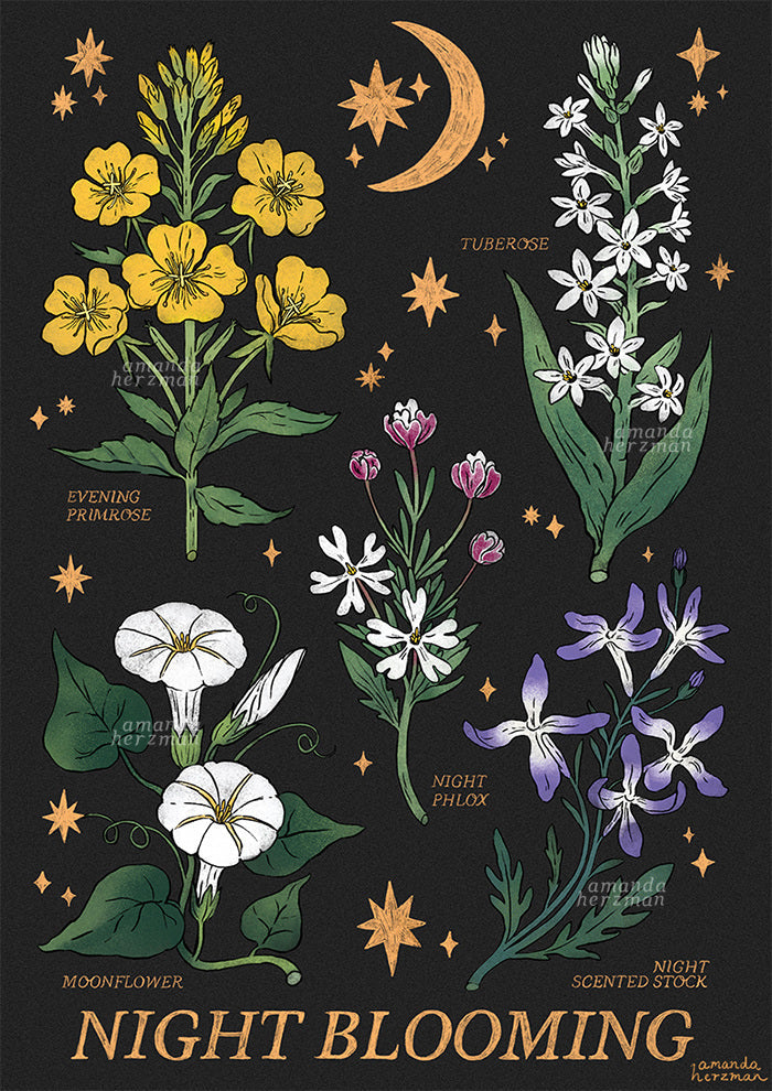Flowers that bloom in the night. These lovely flowers bloom in early evenings and in the night to attract night pollinators.