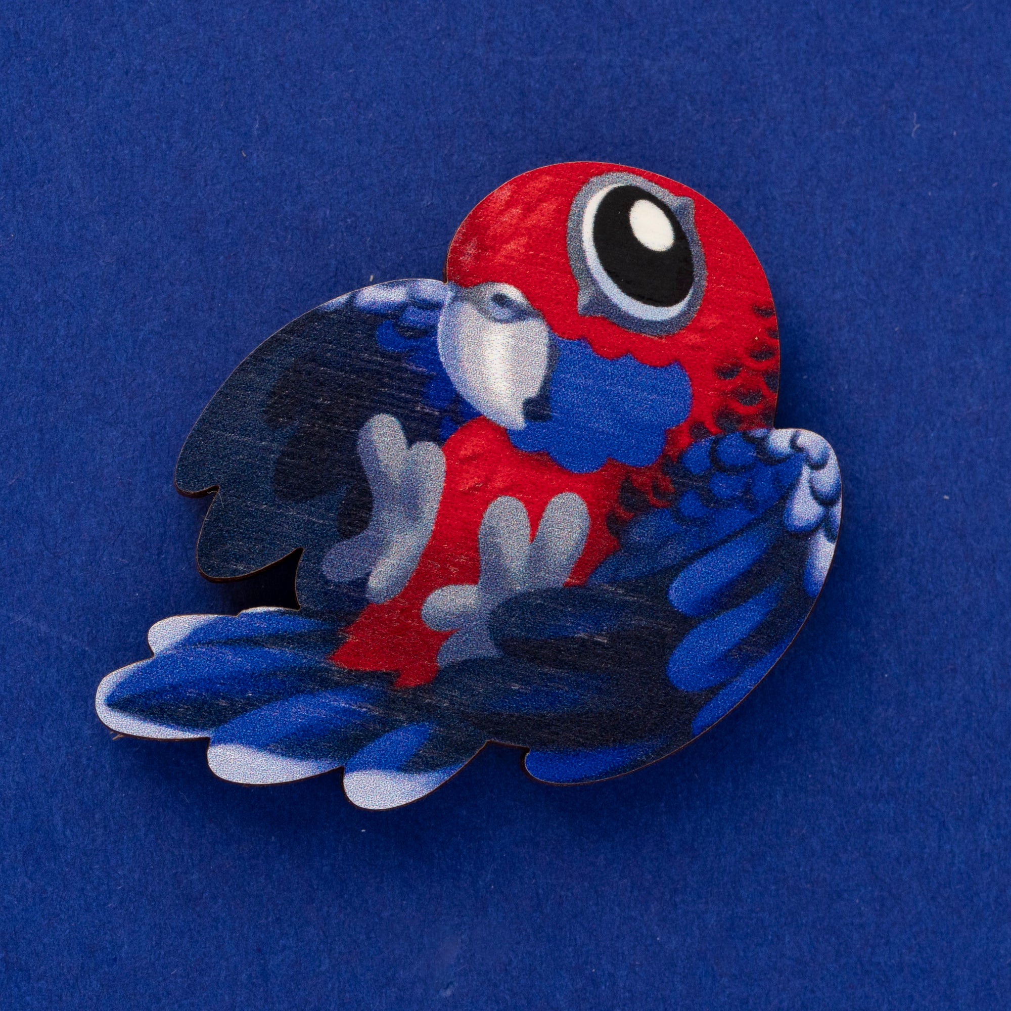These little Aussie cockatoo pins are printed in full colour on sustainably sourced wood! They have two pin posts on the back to keep them securely in place wherever you put them (unlike the real thing) and feature a little gloss finish on their eyes for that extra spark of life when they catch the light.
