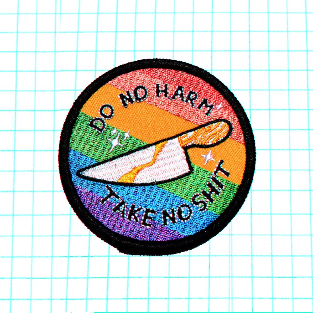 "Do No Harm/Take No Shit" Gay Flag Iron-On Embroidered Patch