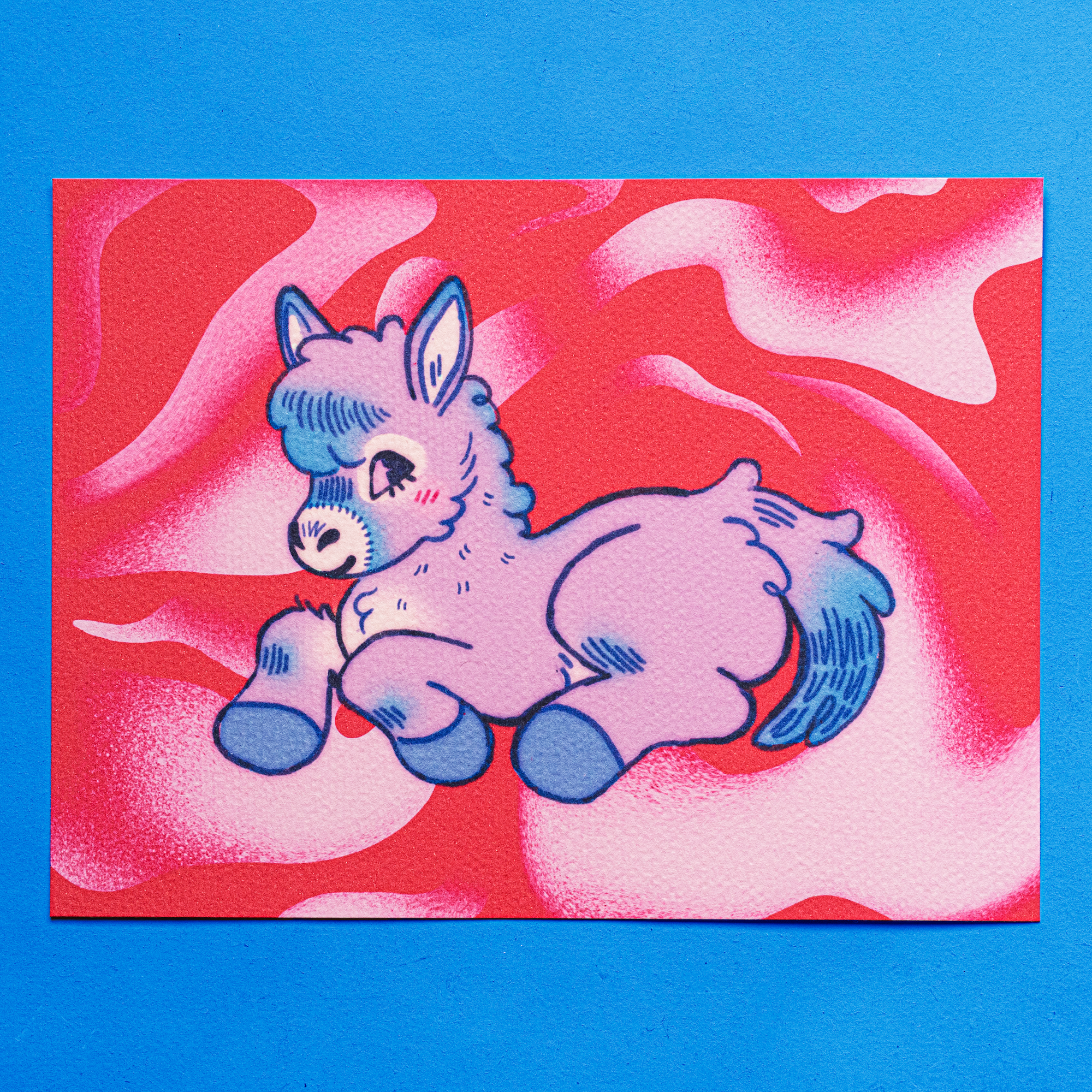 A sweet little pink donkey. Printed on textured felt board to emphasise their softness.