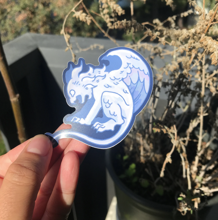 | This sticker is approximately 3 inches (7.6 cm) on the longest side, and printed on matte vinyl. |