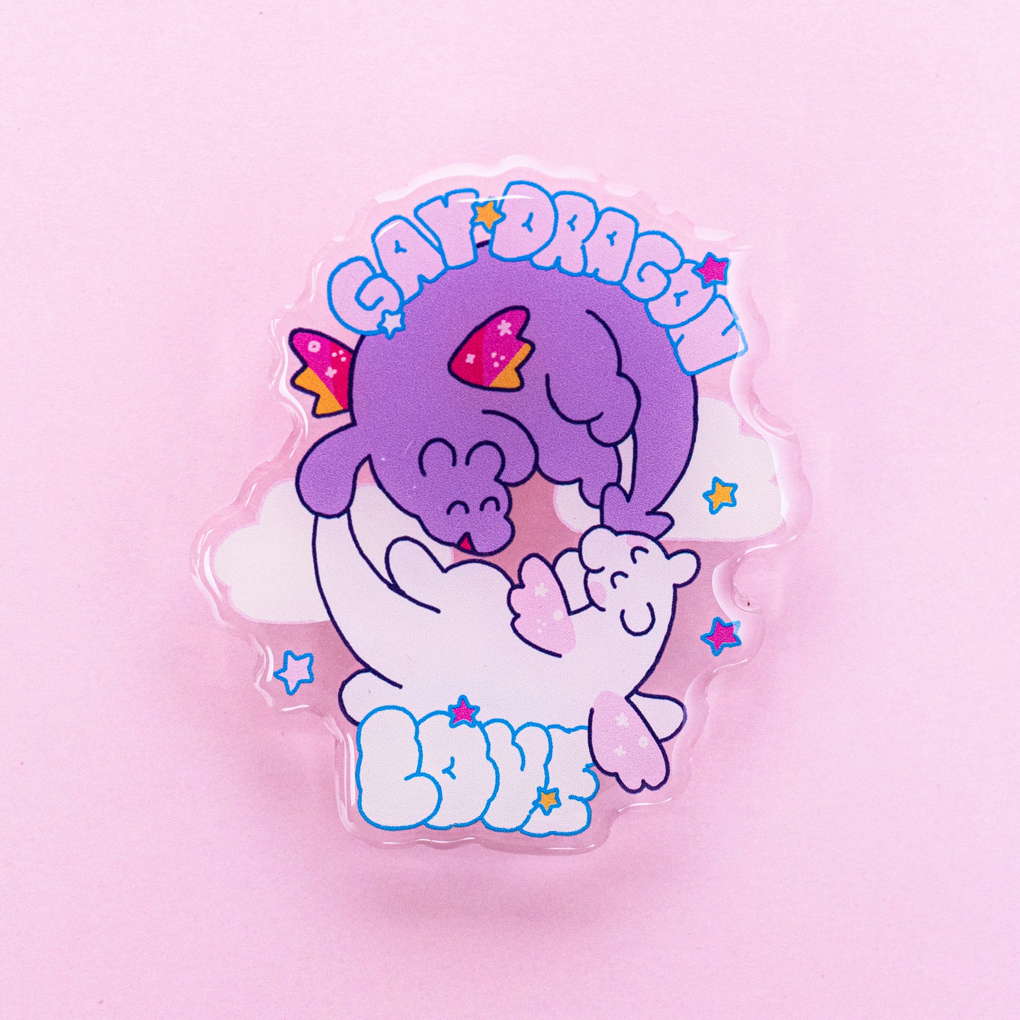 These dragons are gay and in love! Spread the word of dragons who are gay and in love with an adorable pin to adorn your favorite backpack or jacket