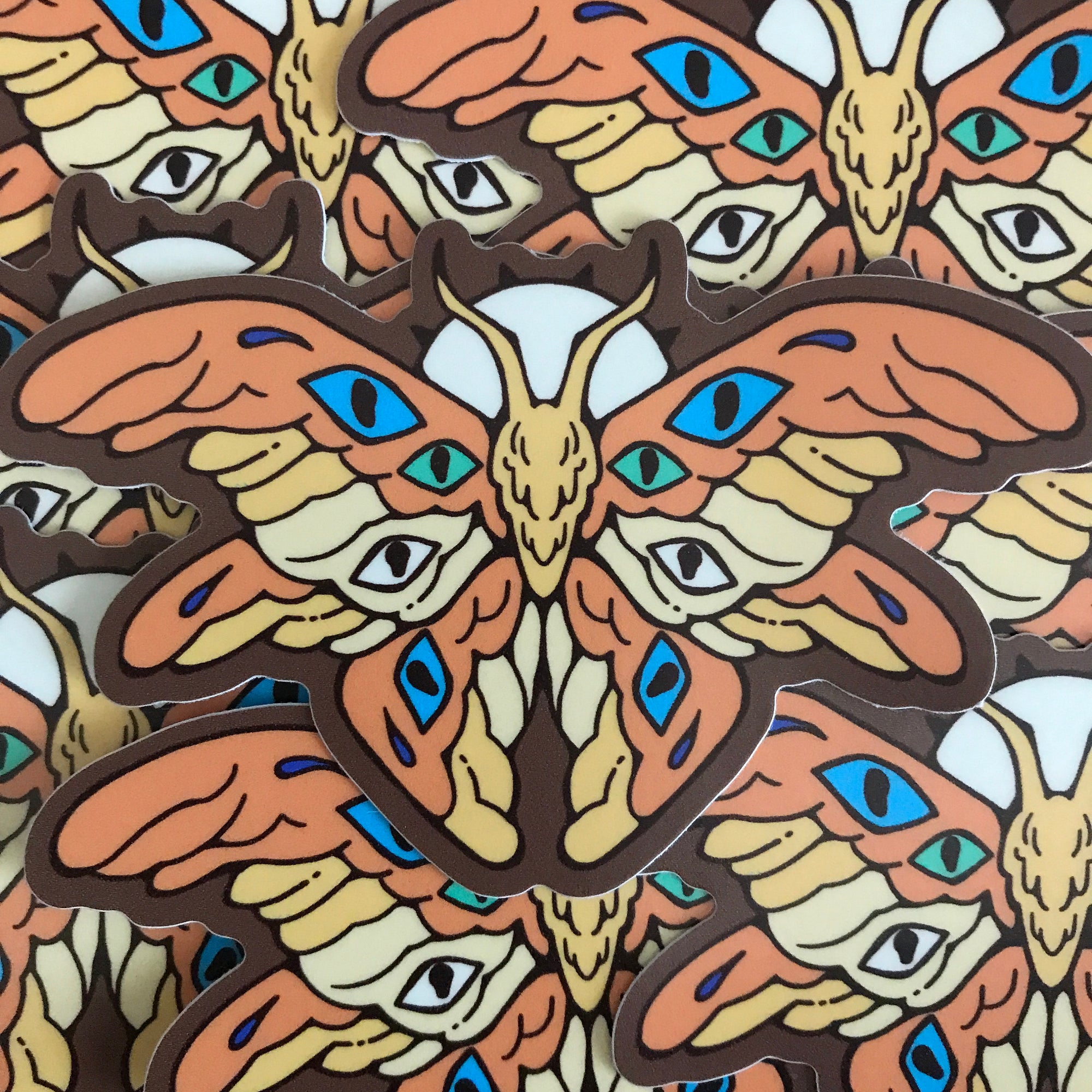 An angel inspired by the Atlas Moth, for Genderfaun pride.This sticker is approximately 3 inches (7.6 cm) on the longest side, and printed on matte vinyl.