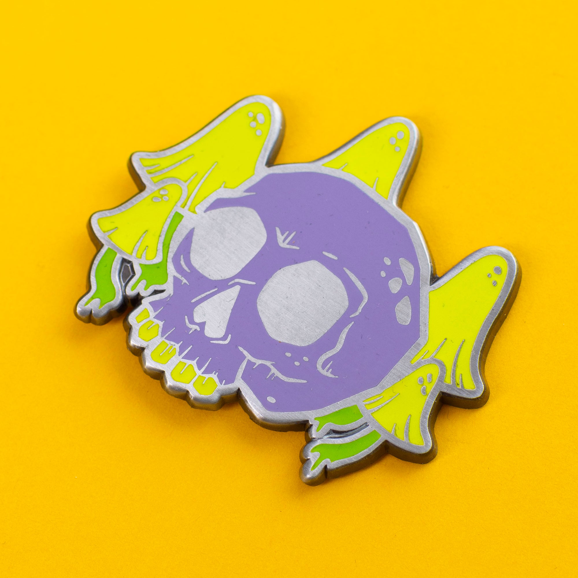 Look, I know this guy's a weirdo. His teeth glow in the dark and he's surrounded by glowing mushrooms, surely he didn't die from eating them...right? Antique silver finish, definitely not cursed, with vibrant glow in the dark details.