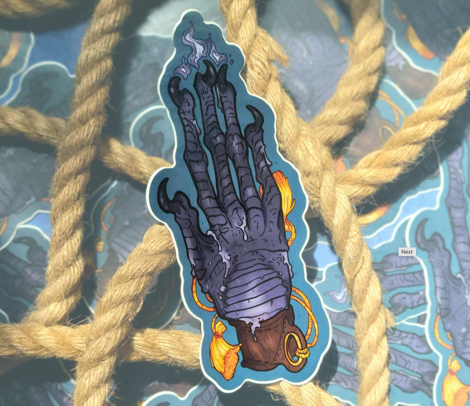 *If you can't source your own mildly cursed hand of wishes and witchery, then store bought is fine.This durable vinyl sticker is great for cars, water bottles, laptops, your fridge if you're feeling it, or even the nice box you keep candles in. It'd fit right in!