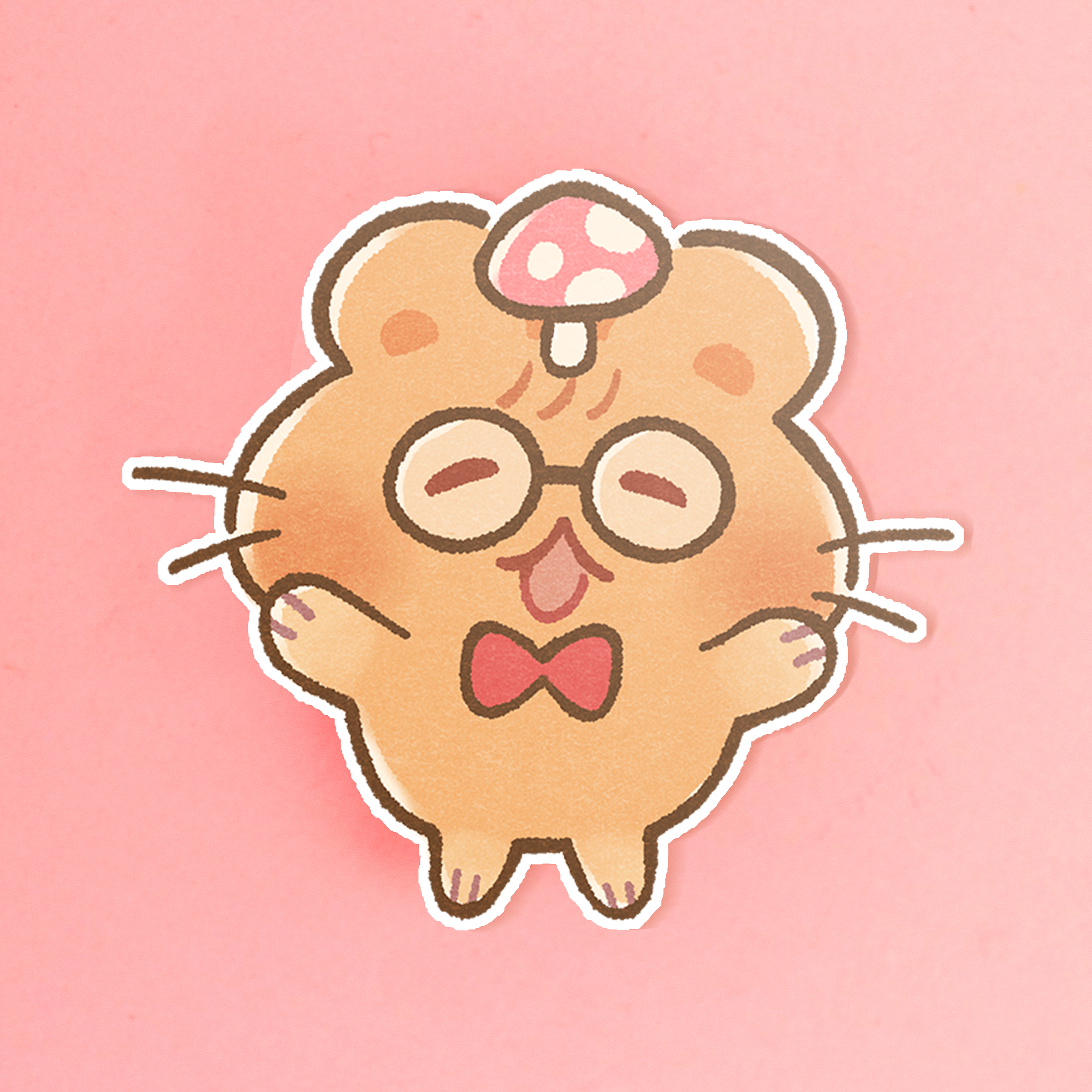 A happy hamster for mushroom season! An original sticker for Mushroomy.