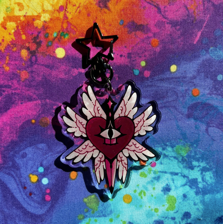 | This acrylic keychain is 2.5 inches (6.3 cm) long, double-sided with the same print on both sides. |