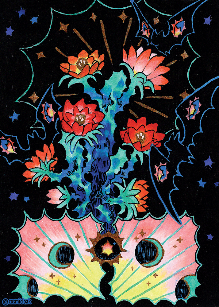 illustration featured in the Gallery Nucleus "Power in Numbers" show 8. Features the moon blooming cactus Higo Chumbo from Puerto Rico. Part 1 of 3 of the "Puerto Rico" series of illustrations.