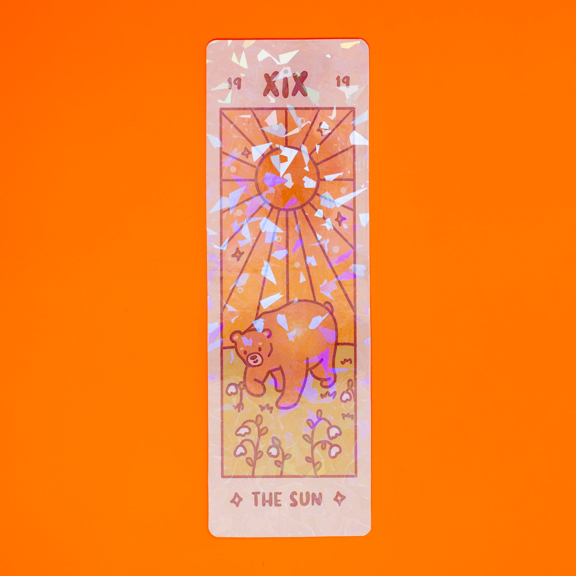 Tarot, but make it bears!These holographic bookmarks are perfect for astrology and book lovers alike! Choose from three cute tarot designs: The Star, The Moon, and The Sun.
