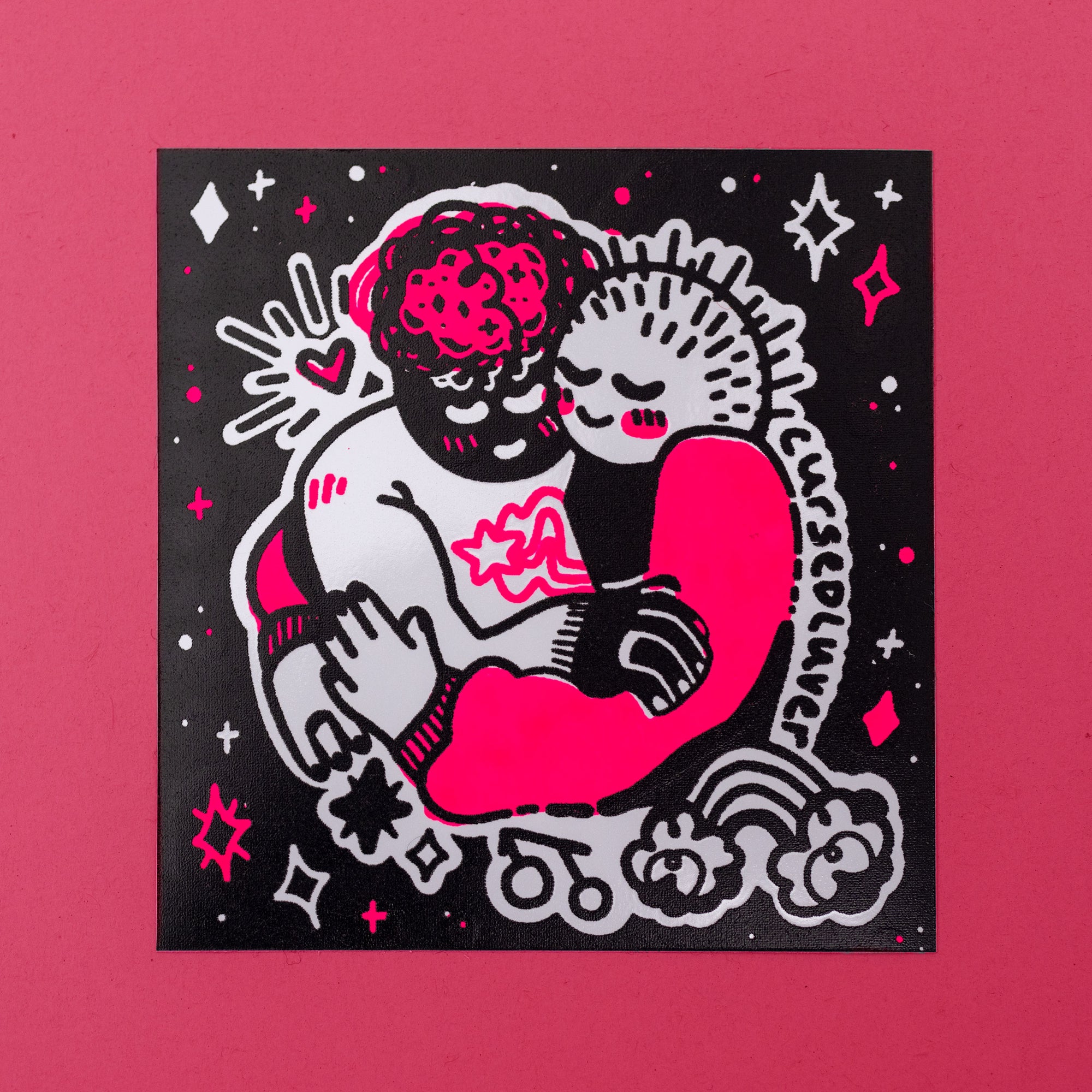 these were printed by the sticker orchard, and were handcut by me and a friend! the pink will fade with exposure to sunlight, but the black is long-lasting and durable!
