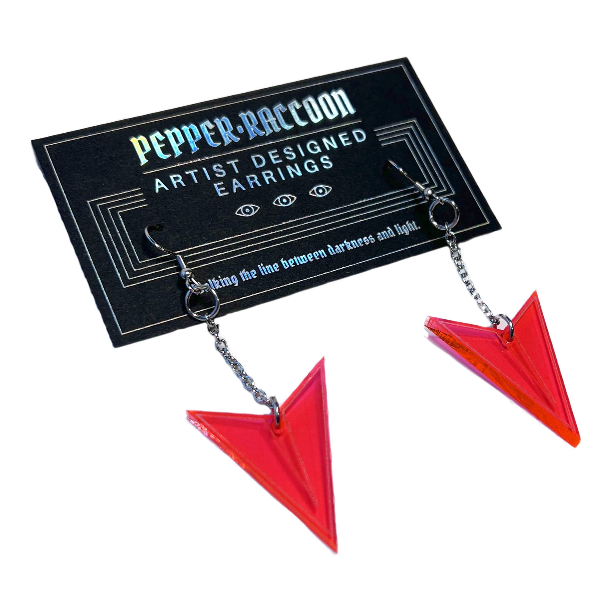 This neon acrylic has become a mainstay of my designs because I absolutely love how bright and magical it is. These hand-crafted chain arrows feature delicate laser-etched detailing and an edgy vibe.