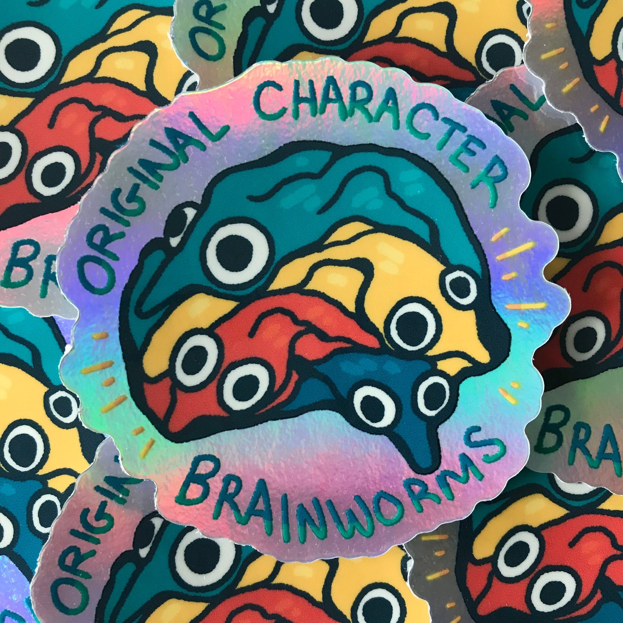 | When everything reminds you of them, you know you've been infected with the Original Character Brainworms. Each sticker is about 3 inches (7 cm) on the longest side and is printed on glossy vinyl. |