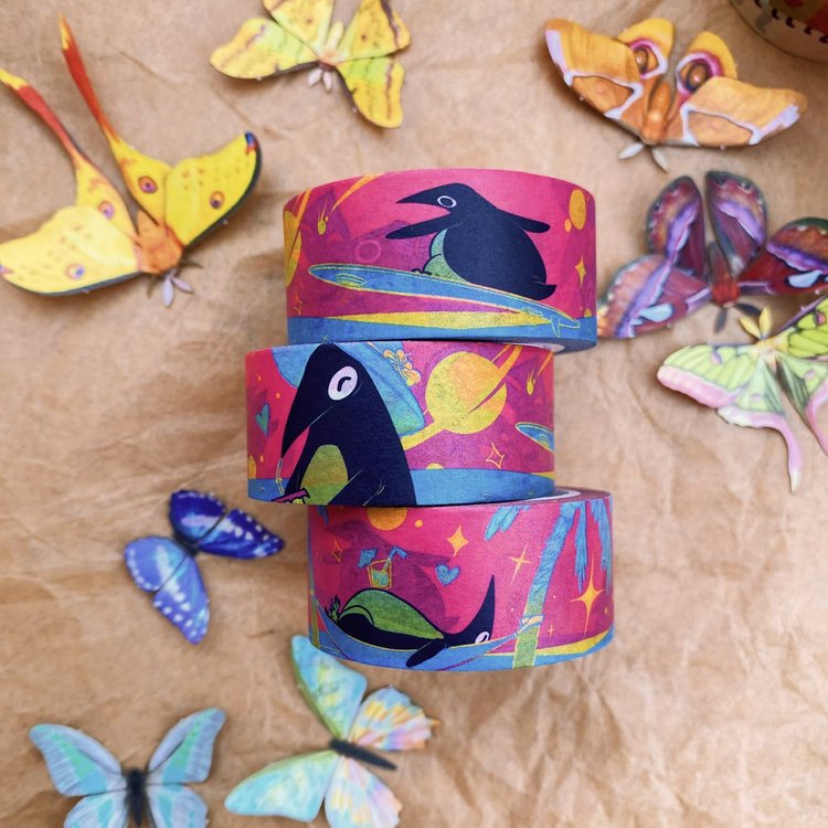 Printed paper tape, perfect for any time you’d use regular tape, only cuter! Hang up artwork, use it in planners, journals, or for sealing and decorating mail. Easily peels off and leaves minimal residue on most surfaces. A perfect gift for the stationery lover in your life - or you!