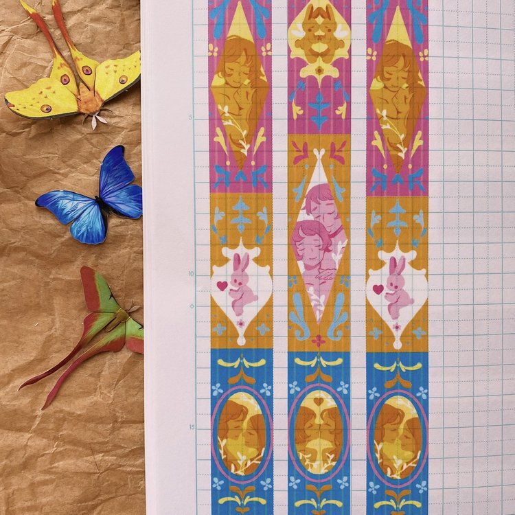 Printed paper tape, perfect for any time you’d use regular tape, only cuter! Hang up artwork, use it in planners, journals, or for sealing and decorating mail. Easily peels off and leaves minimal residue on most surfaces. A perfect gift for the stationery lover in your life - or you!