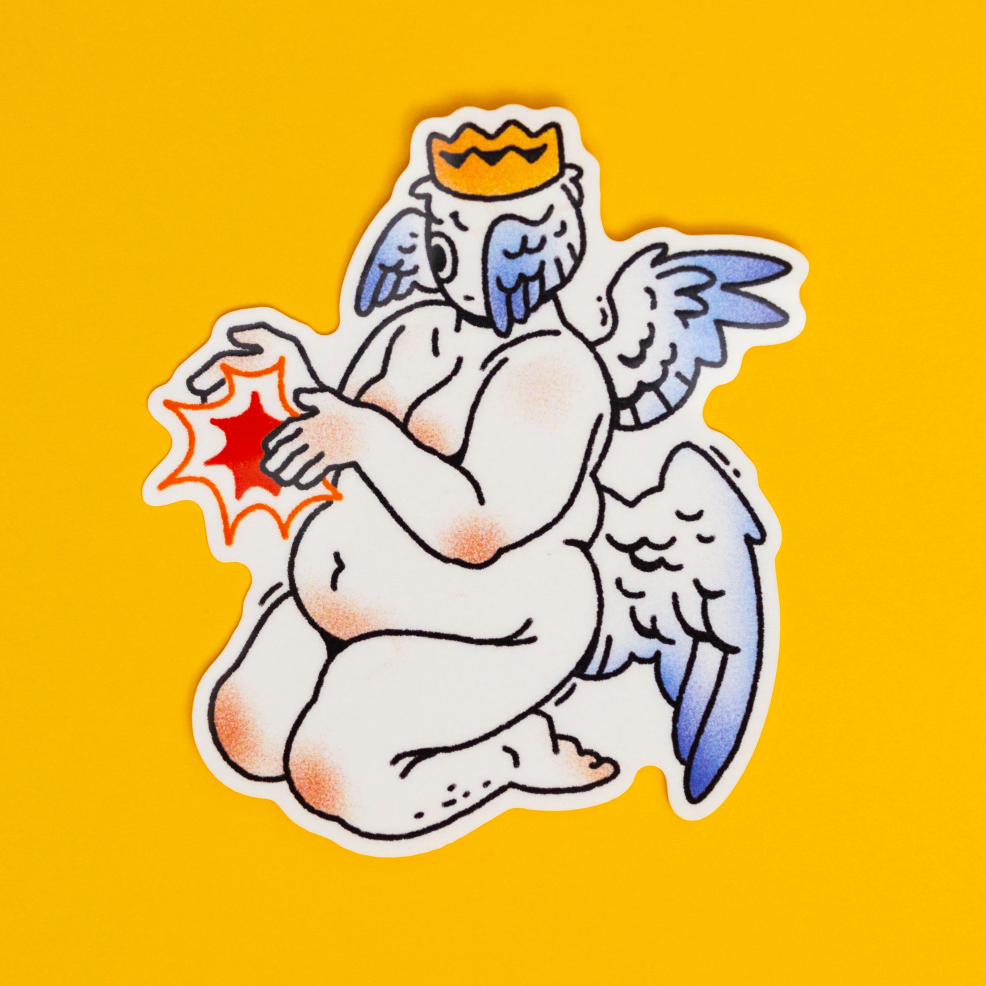 An original sticker featuring the tattoo flash art of Taurus Teej!