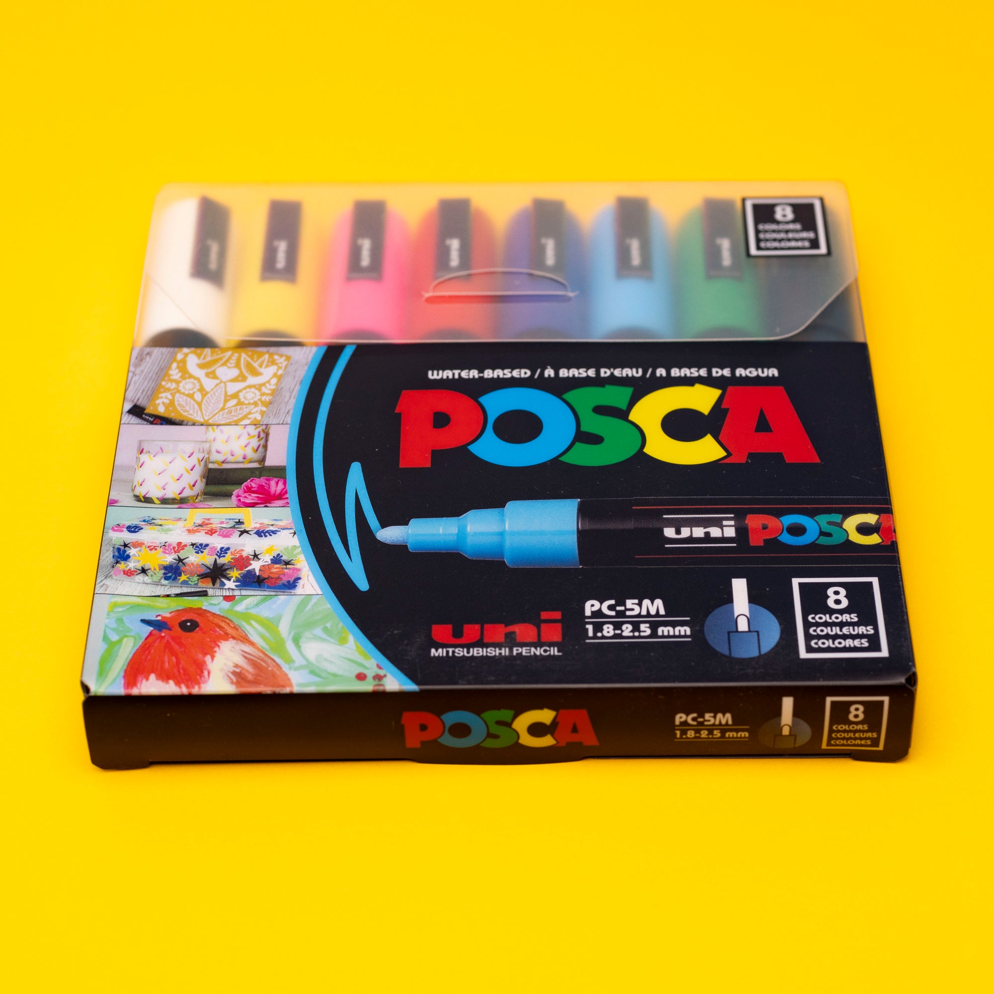 Uni POSCA paint markers feature bright opaque ink which is water-based, waterproof, and non-toxic, suitable for use on a range of surfaces and materials including paper, photos, plastic, metal, glass and wood.
