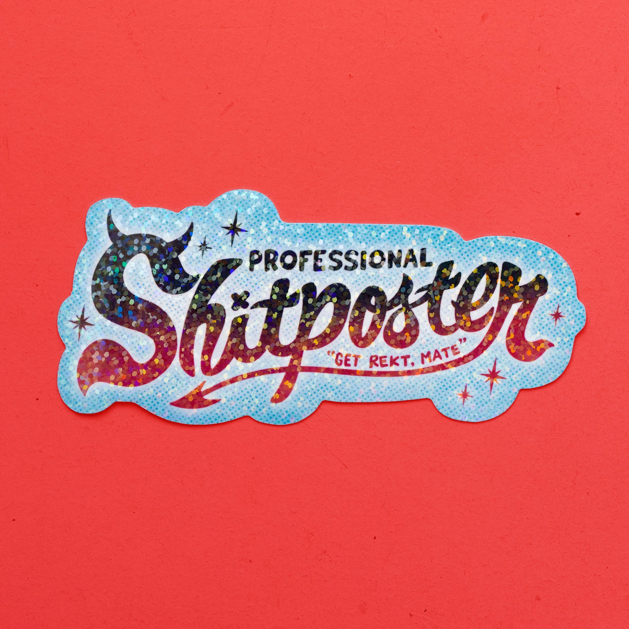YOU'RE TELLING ME A SHRIMP FRIED THIS RICE?Declare your affiliation with the trash creatures of the internet with this shimmering Shitposter sticker, guaranteed to make your computer run gooder and your printer print printier.