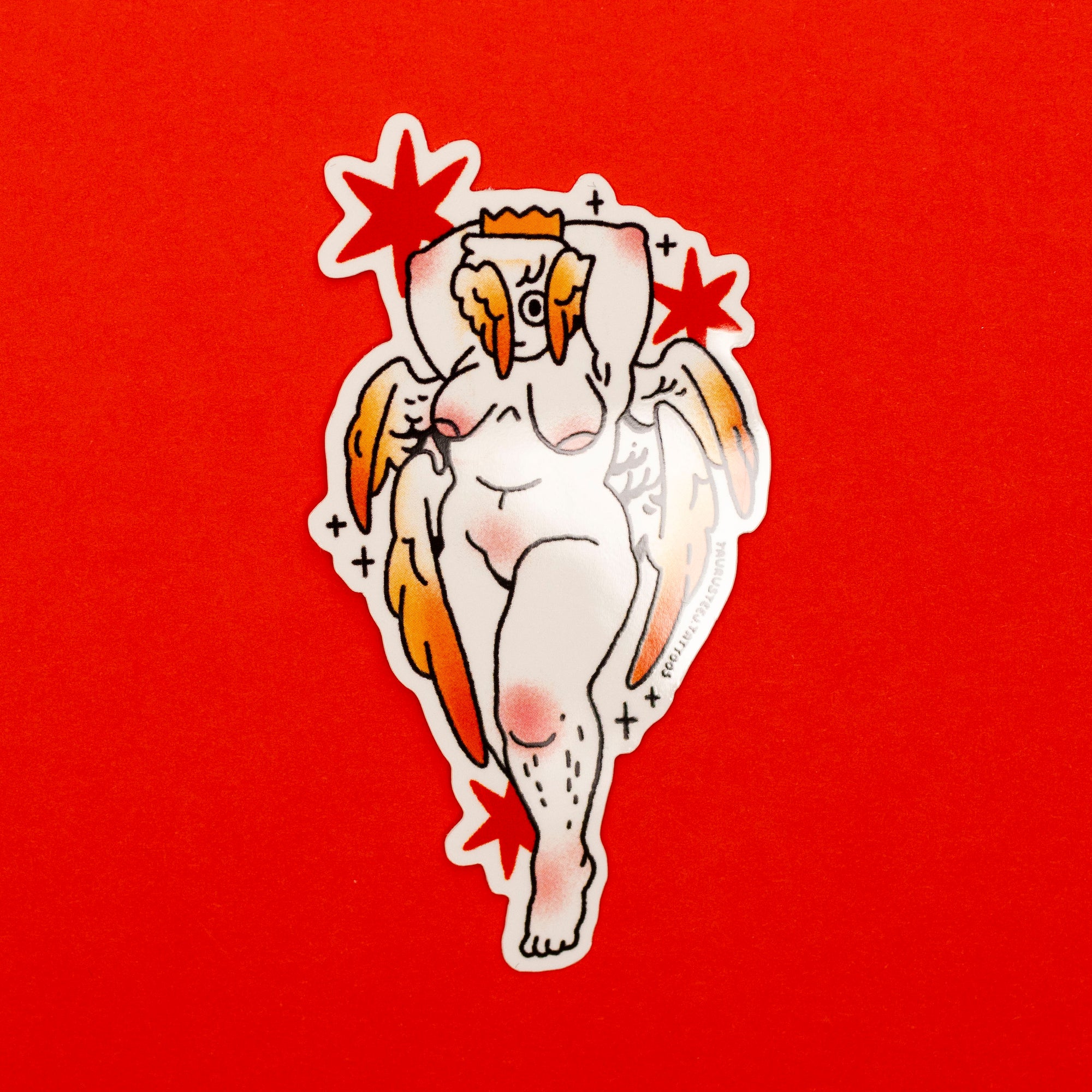 An original sticker featuring the tattoo flash art of Taurus Teej!