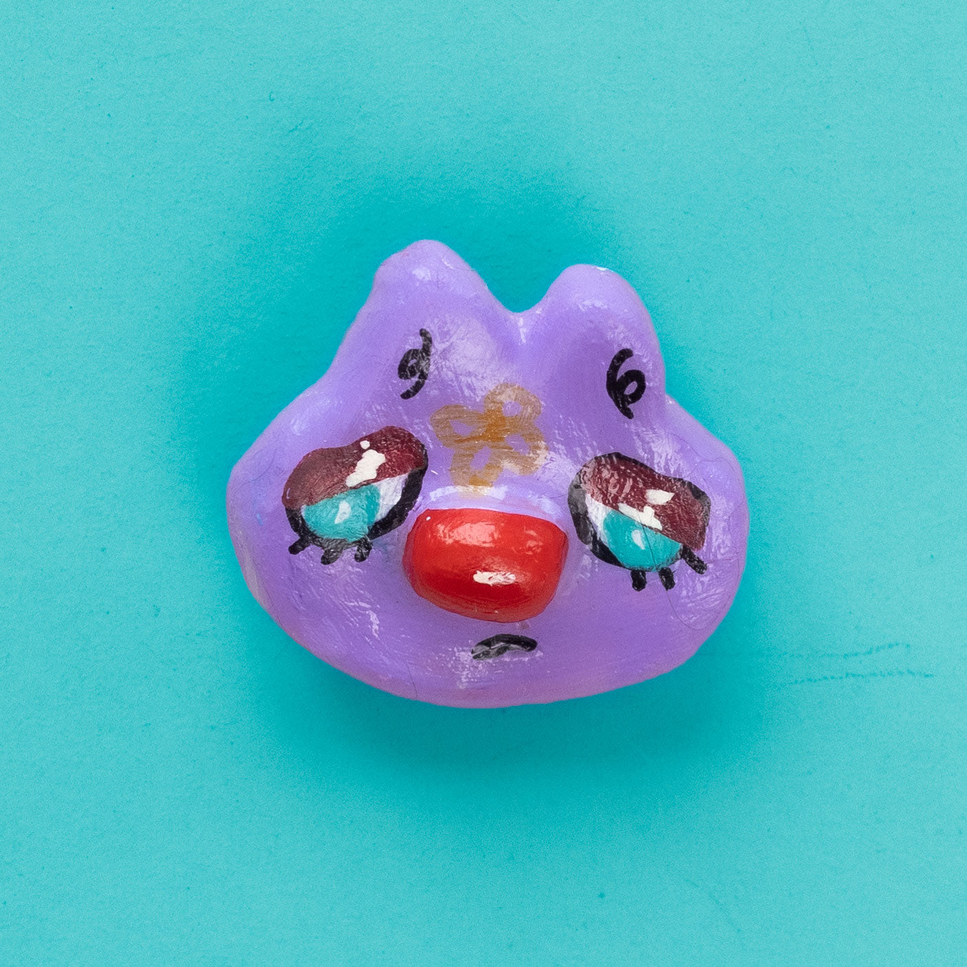 A sweet purple friend to keep you company. Each of these pins are handmade and uniquely one of a kind.