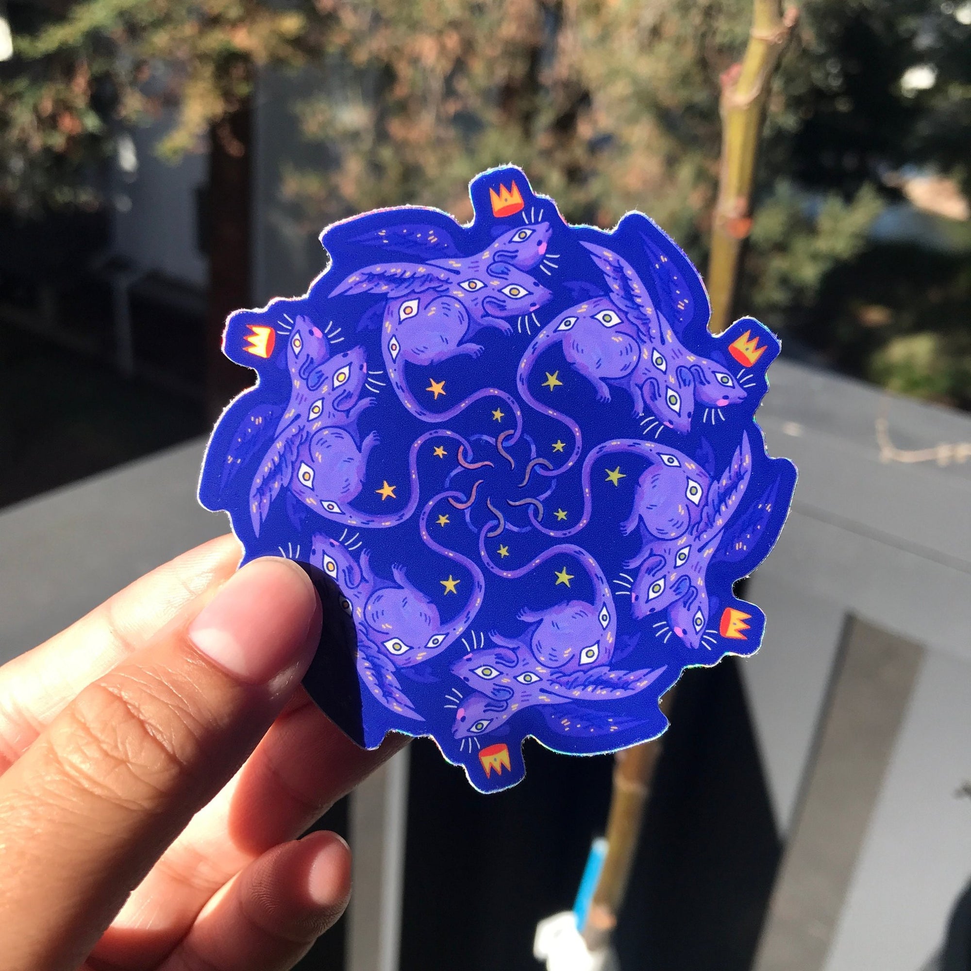 | This sticker is approximately 3 inches (7.6 cm) on the longest side, and printed on matte vinyl with holographic accents. |