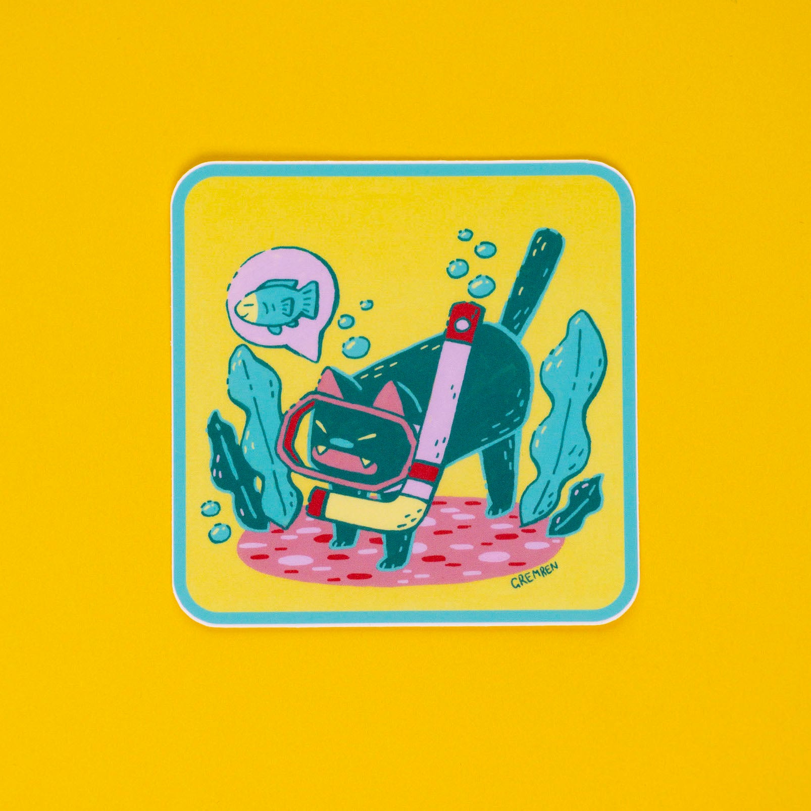 Scuba Cat Waterproof Matte Vinyl Sticker