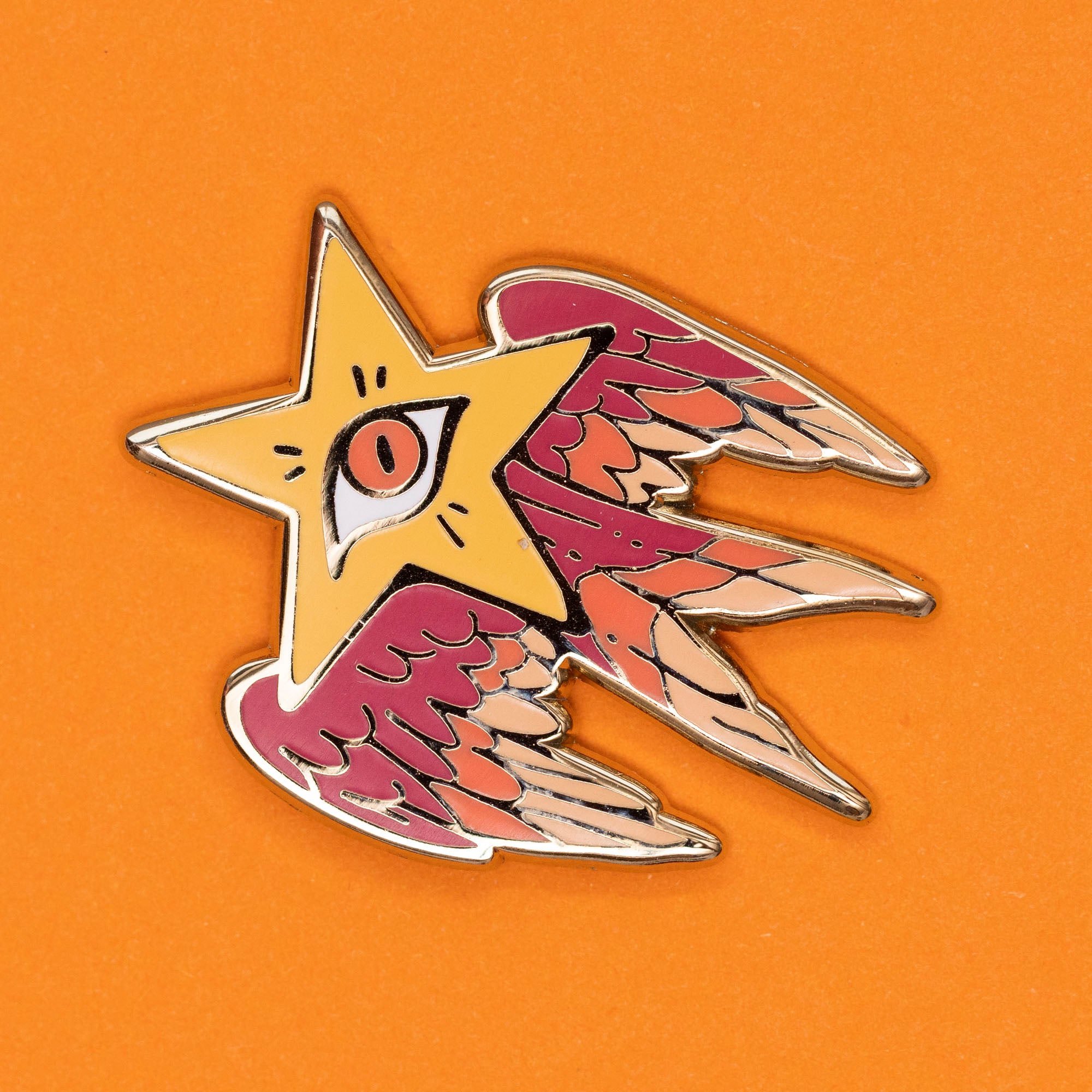 These pins are approximately 1 in (2.5 cm) wide. Each pin has hard enamel and two pin posts with rubber clutches; they have gold plating.