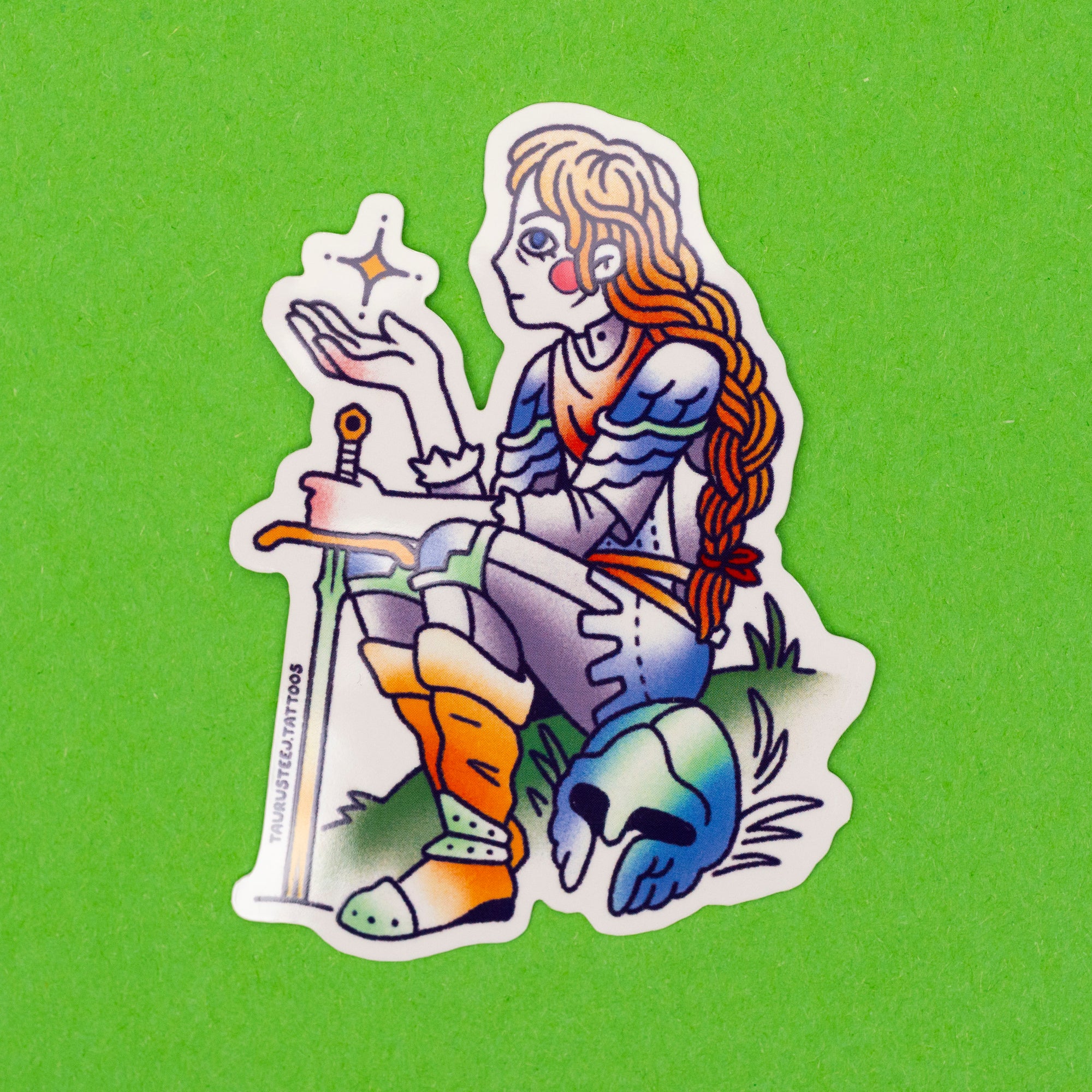 An original sticker featuring the tattoo flash art of Taurus Teej!