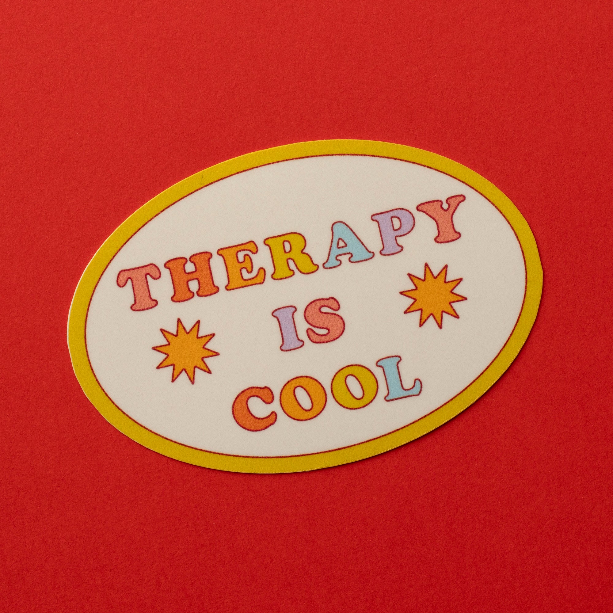 Therapy is cool! Die-cut sticker printed on glossy vinyl sticker paper and laminated.
