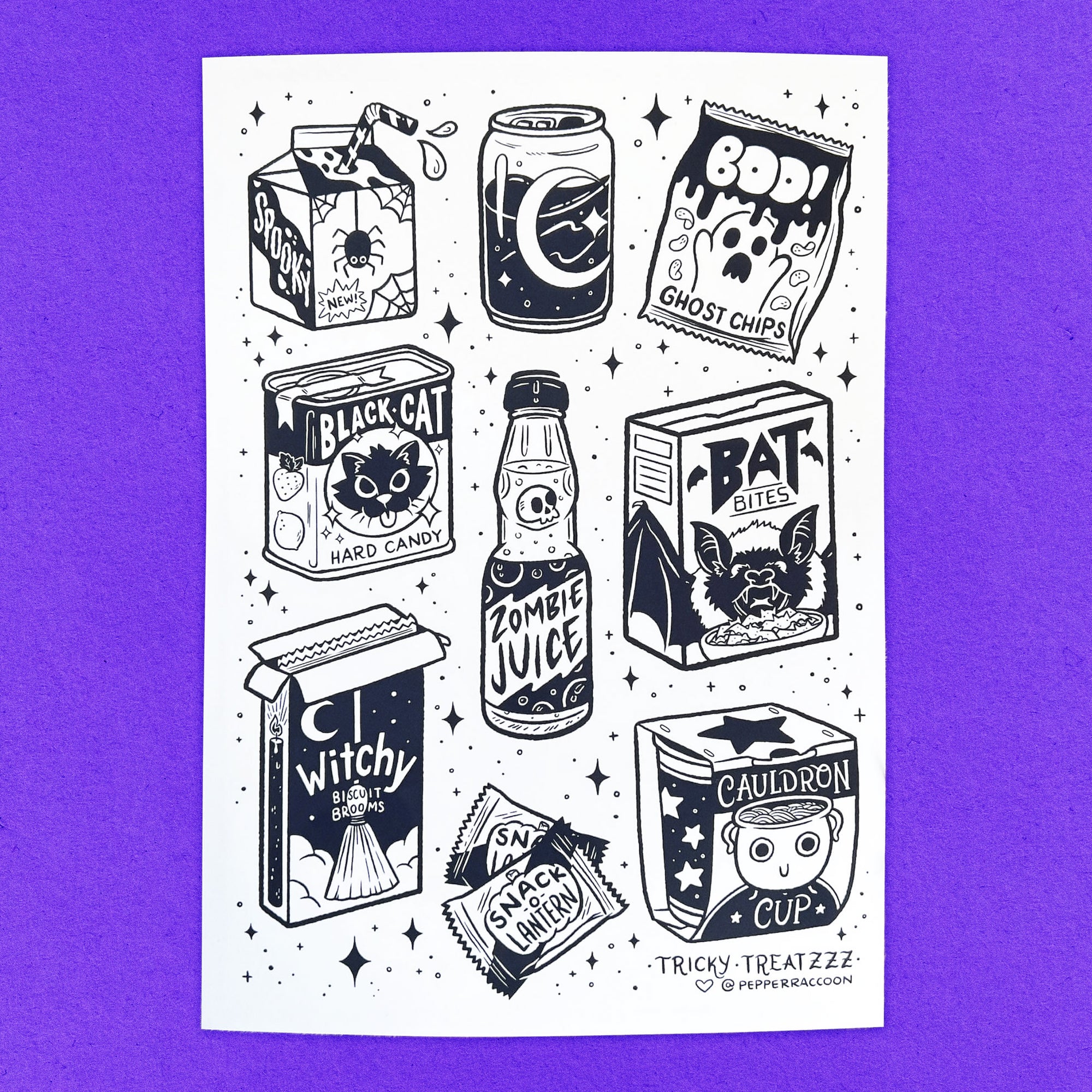 This Tricky Treatzzz art print is printed with high quality pigmented inks on premium photo paper. Decorate your space with this witchy design, inspired by tattoo flash sheets.