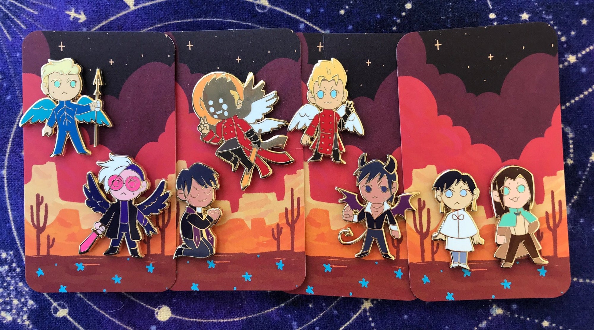 | Chibi pins inspired by Trigun 98 and Trigun Stampede. Each pin is about 1.5 inches (3.8 cm) long with hard enamel and gold plating. They have two pin posts and rubber backings. These are mini pins, they are a little smaller than my usual pins Please note: Angel Nai has an enamel color mistake in the hand. The following pairs are available: - Priest Wolfwood and Angel Vash, featuring Wolfwood with his eldritch guardian angel. - Angel Nai and Vash, inspired by the last episode of season 1 of Trigun Stampede. - Milly and Meryl! More love for the Trigun gals! - Devil Wolfwood and Angel Vash, inspired by some Trigun 98 promotional art. |