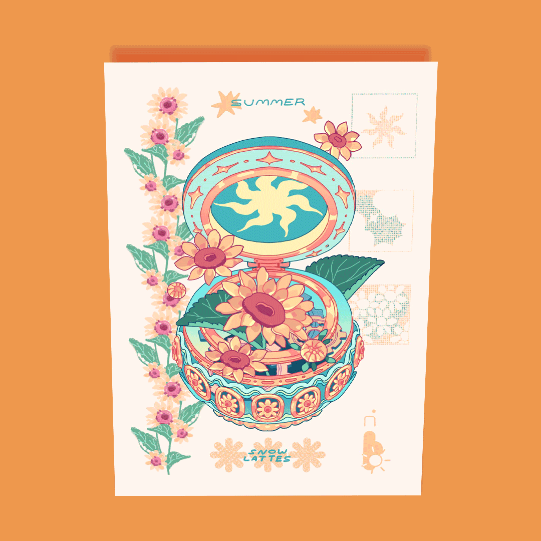 An endless summer.Turning Summer in Sunflower is about the growth of seasonal flowers in those little porcelain trinket boxes. Come and take a look inside and see how the flowers grow.Original Illustration by Snowlattes.