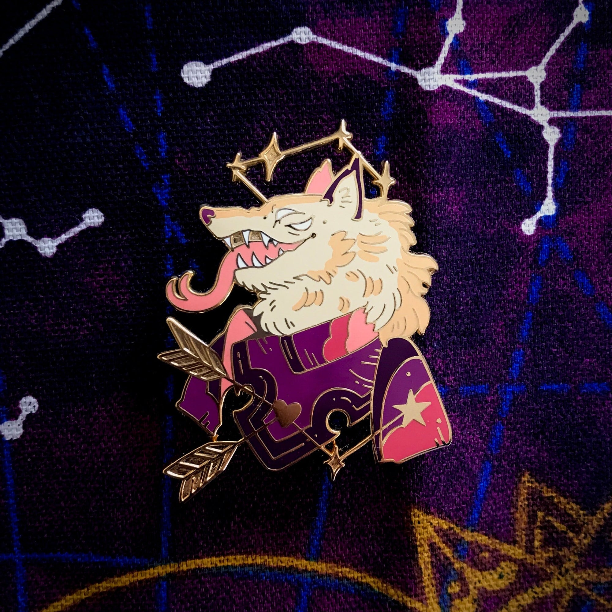 This pin is 2.2 inches (5 cm) long, with gold plating with recessed metal details, hard enamel, and screenprint. It has two pin posts and rubber backings. This listing is for seconds grade pins. For my complete pin grading policy, please see my About & FAQ: linktr.ee/ultra.infinite